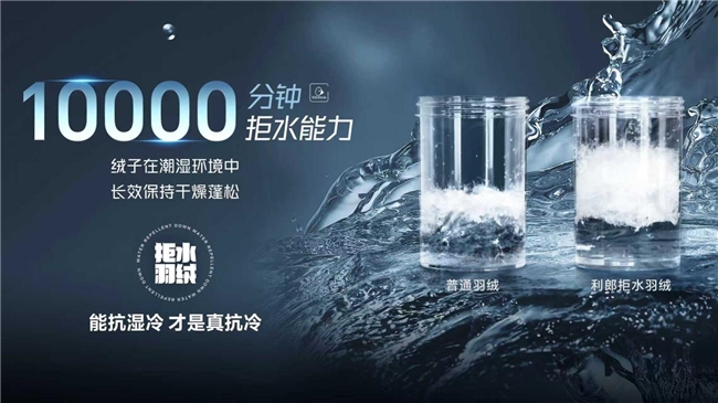 直面羽绒拒水性能:一场针对湿冷环境的科技升级 长期以来,羽绒服在潮湿环境下的保暖性能衰减,是行业与消费者共同面对的难题。传统羽绒一旦遇水潮湿,绒朵容易板结,失去蓬松度,导致保暖性能大幅下降。利郎自2022年推出拒水羽绒系列以来,持续投入研发,其最新的拒水羽绒4.0技术,所使用的Downtek拒水羽绒在IDFL的震荡测试中取得了超过10000分钟的优异成绩,并荣获双项世界纪录(WRCA)官方认证羽绒服殊荣。基于这一技术突破,利郎率先提出“抗湿冷羽绒”全新产品定位,系统性地针对低温潮湿环境,构建从面料、羽绒到工艺的整体抗湿冷解决方案。此举不仅是对产品功能的重新定义,更旨在开辟羽绒服细分市场的新赛道,满足南方湿冷地区、户外运动、雨雪天气等多场景穿着需求。